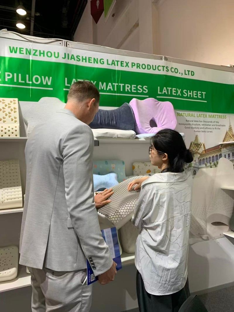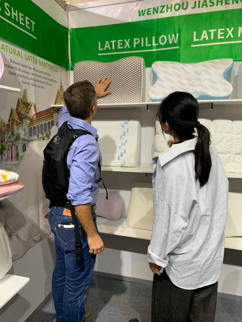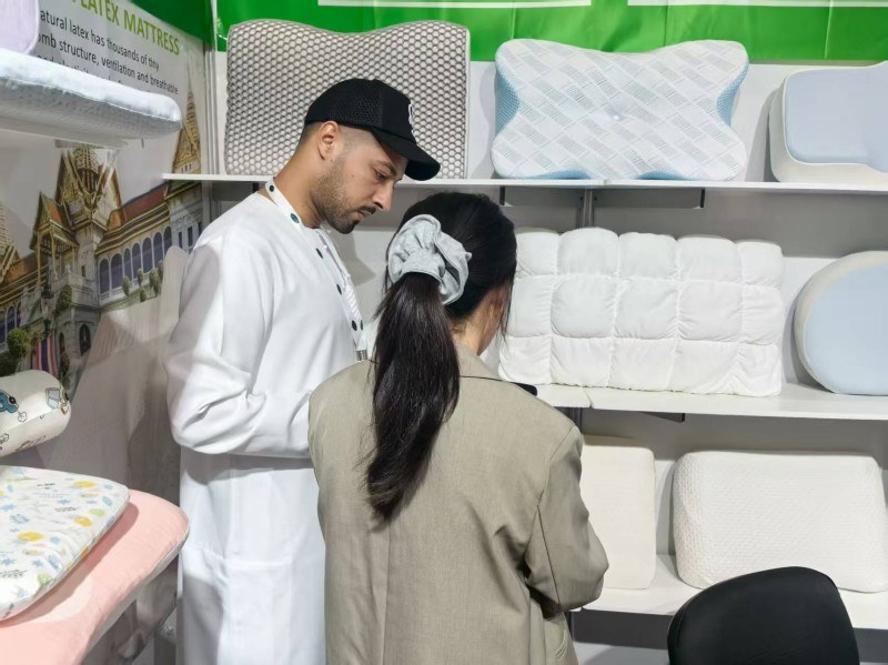 Alla Dubai Sleep Exhibition, siamo onorati di mostrare ai visitatori di tutto il mondo i nostri cuscini dedicati al sonno. Ci dedichiamo a presentare due dei cuscini più venduti sul mercato: ilcuscino in lattice naturalee il materiale moderno e intelligentecuscino in memory foam. Le proprietà antiallergiche e di rimbalzo rapido del lattice sono molto apprezzate dagli appassionati di lattice. Nel frattempo, la massima vestibilità del memory foam può fornire un sonno profondo. La nostra comunicazione approfondita con i clienti sul posto ci ha fatto capire la loro ricerca di cuscini. Crediamo fermamente che fornire scelte personalizzate per le diverse abitudini del sonno sia la chiave per un sonno di qualità.